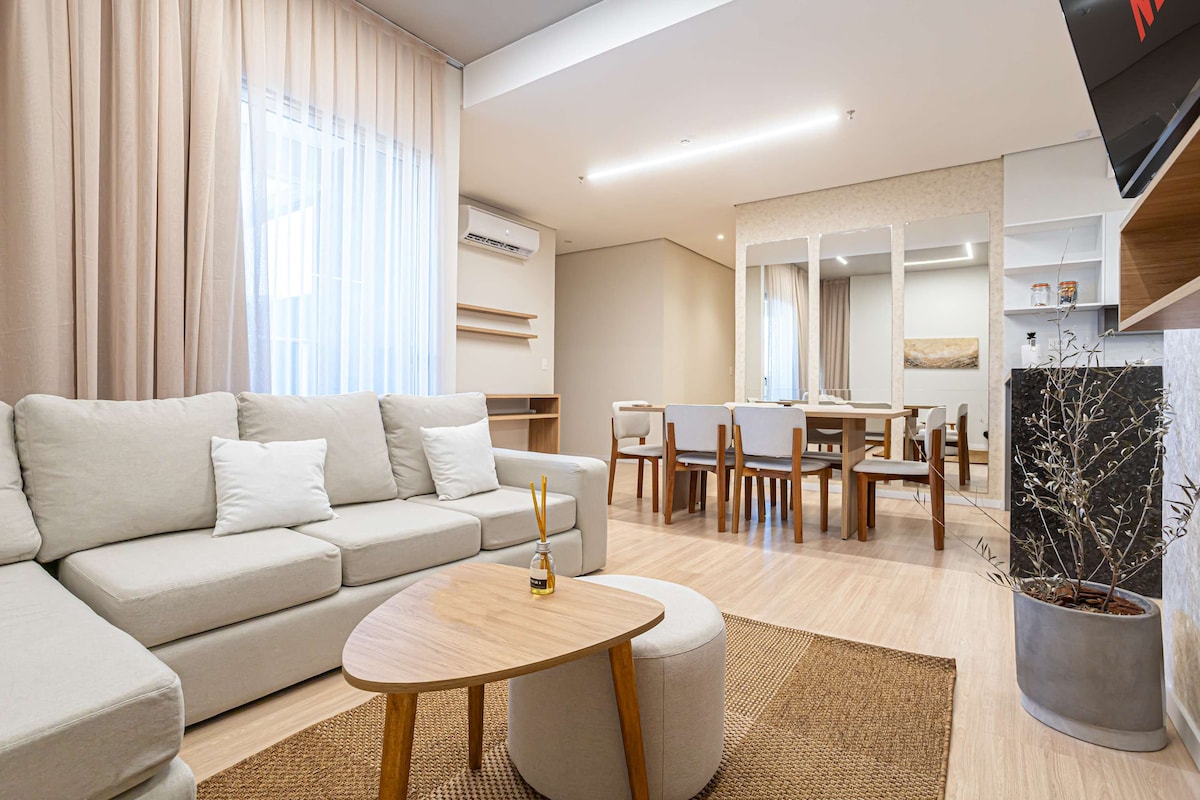 精美公寓,购物区域,300 MB Wi-Fi + 55 英寸电视。