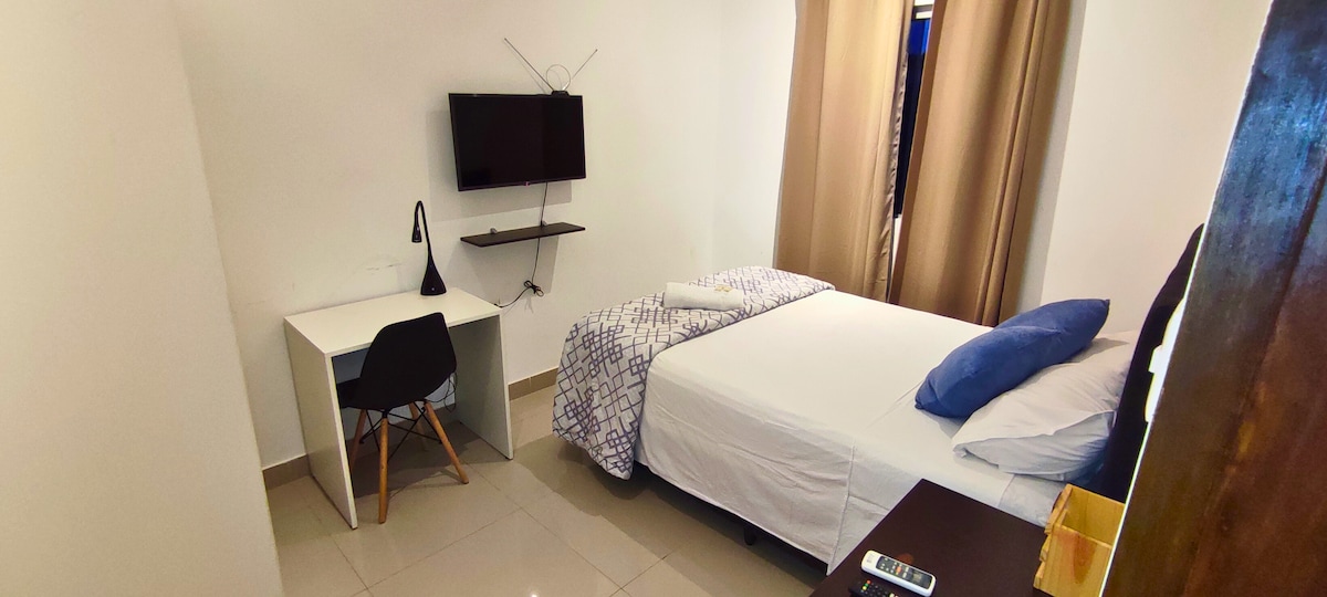 Disfruta de un monoambiente moderno y totalmente equipado en Luque. Cuenta con cama doble, sofá cama, cocina completa, baño privado y balcón con vista verde. El edificio ofrece piscina, gimnasio y área de juegos infantiles. Ideal para parejas, viajeros de trabajo o familias pequeñas que buscan comodidad y practicidad, con llegada autónoma y ubicación cercana al aeropuerto y fácil acceso a Asunción.