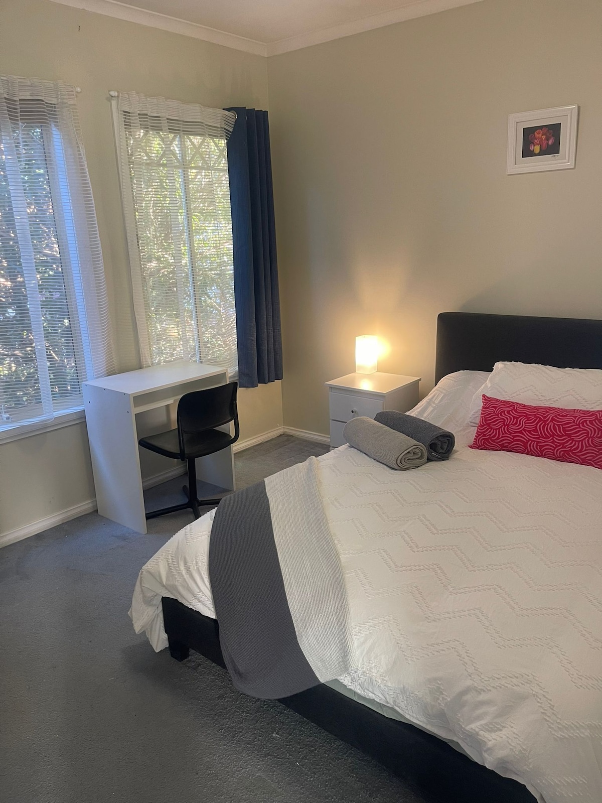 Fully self-contained studio behind our home in Maribyrnong, just 9km from Melbourne’s CBD. Quiet and convenient, with a tram stop at your doorstep and easy access to the Maribyrnong River, Victoria University, Highpoint, Footscray Market, and Footscray Hospital. Fully furnished with a queen bed, bathroom, kitchen, washing machine, TV, and storage. Tucked away in a peaceful street, it’s perfect for singles or couples looking for a comfortable stay — whether short-term or extended.