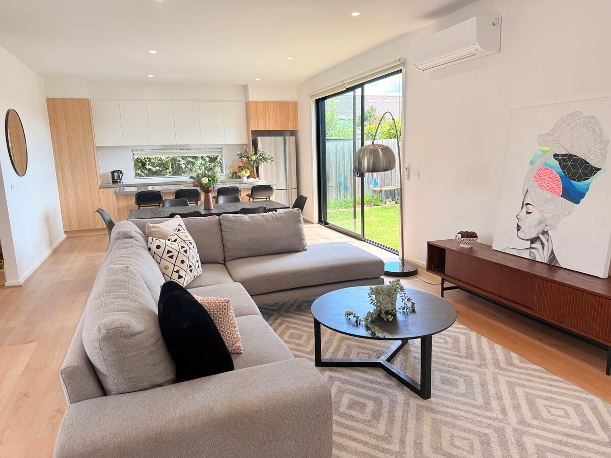 Inner-city townhouse on a quiet suburban street 9km from Melbourne CBD. 4 mins walk to the train station which takes you directly to Southern Cross. Extremely light and welcoming. Recently renovated with brand new appliances and 55" smart TV. Fully air-conditioned. Two bedroom with very comfortable double beds and a sofa bed in the lounge area. Outdoor alfresco area. 2 mins walk to local shops. Study nook, High speed 50mbs NBN internet. Washing machine & tumble dryer. OSP and small back garden.