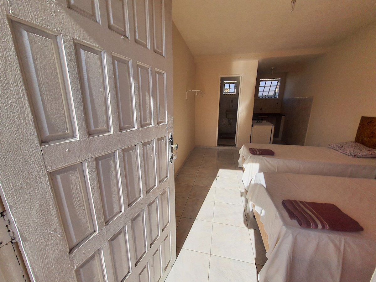 Oferecemos kitnet mobiliada, confortável e bem localizada! Características: - Mobiliada (cama, guarda-roupa, mesa, cadeiras, smart tv) - Ar condicionado - Internet - Consumo de luz até 100kw incluído - Local tranquilo e silencioso - Câmeras de segurança Regras: - Máximo 2 pessoas - Não permitido crianças - Não permitido pets