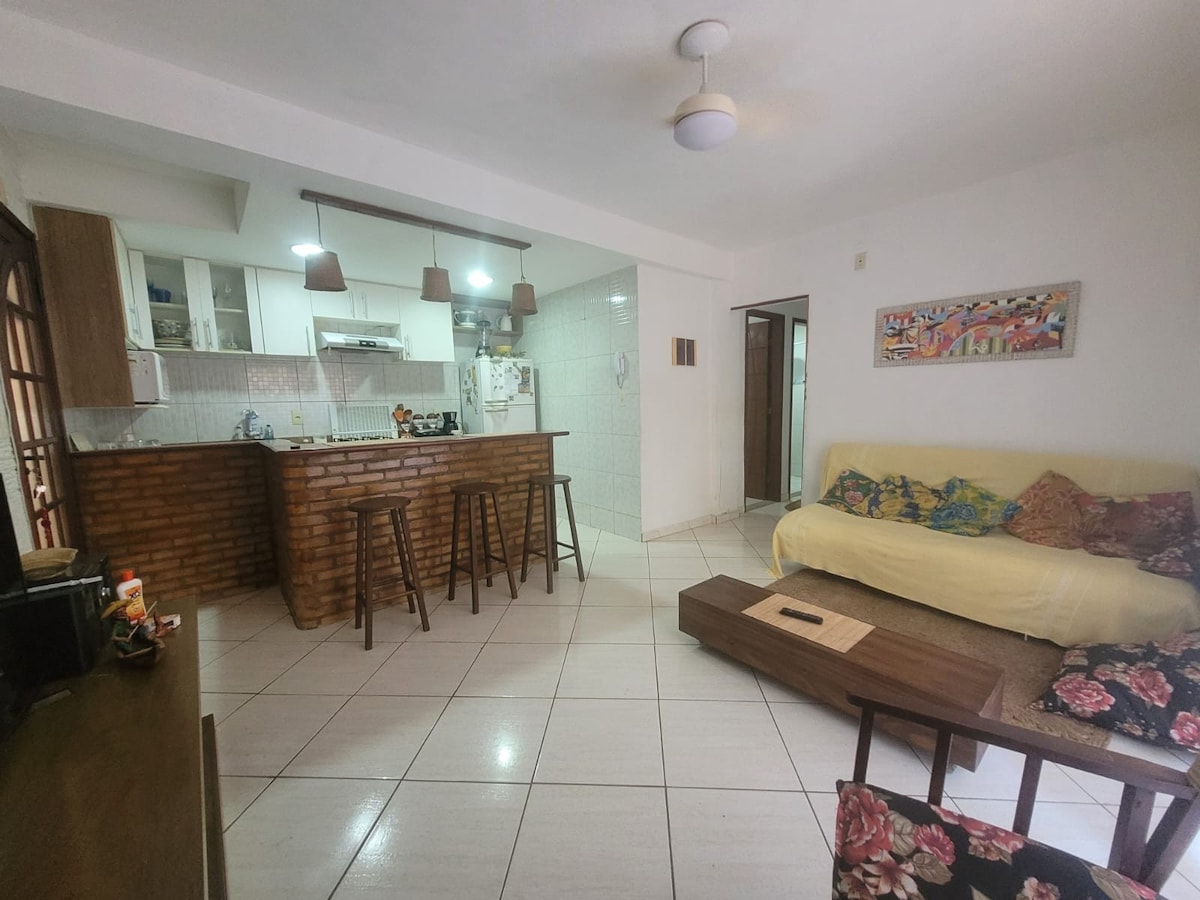 Sobre o imóvel: - Studio com 25m² e fica localizado a 5 minutos de carro da praia e a 2 min do Centro Comercial (BARROCO); - Garagem privativa; - Acomoda confortavelmente até 3 pessoas; - Varanda espaçosa . Destaques: - Cozinha equipada com cooktop por indução duas bocas, forno elétrico, microondas, air fryer, sanduicheira, cafeteira dolce gusto, cafeteira elétrica e liquidificador. - Wi-fi de alta velocidade; - Ar condicionado; - Ventilador de teto; - Smart TV.