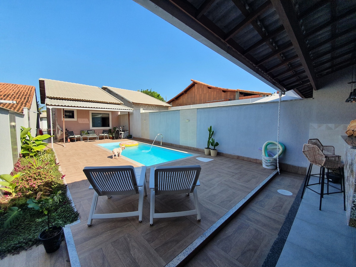 🏠 Casa de praia super aconchegante equipada com todos os utensílios necessários para sua estadia. ❄️ 4 quartos (todos com ar condicionado). 🍺 Churrasqueira na sombra, anexa à piscina, com Freezer e TV smart 50” 🚽 Lavabo na área externa. 🪴 Wi-Fi 100MB 🏖 A 500 mts da praia e comércios em geral. 🐶 Somos pet friendly - 🚘 Estacionamento para até 6 carros. 🚨 AVISO IMPORTANTE Para reservas até 6 pessoas, o menor quarto será mantido fechado ( ficando disponível 2 quartos mais a suíte)
