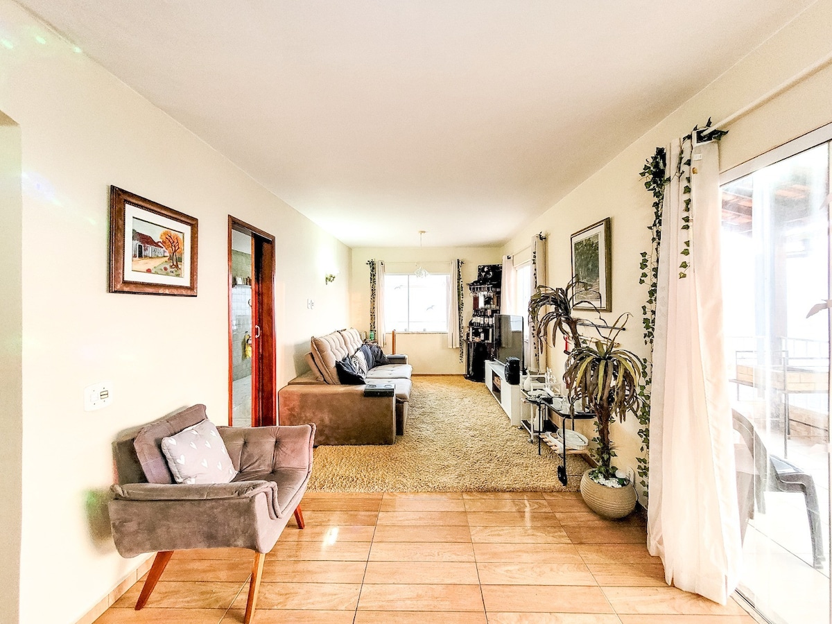 Casa mobiliada 12-15 hóspedes com piscina de 45m2 com ozônio. Amplo espaço externo arborizado, churrasqueira grande, bar molhado, fonte, estátua do Cristo Redentor, bancos com carregadores para celular, mesas e bancos decorativos, móveis jardim, wi-fi, mesa de bilhar/ sinuca, mesa totó, jogos tabuleiros, livros, jogos, ... 3 quartos a/c, 3 banheiros INT (+1 banh EXT+ 2 lavabos) cozinha,sala de estar, sala de jantar e varandão. *em breve SPAR, fogão a lenha, fogueira, piscina infantil, play