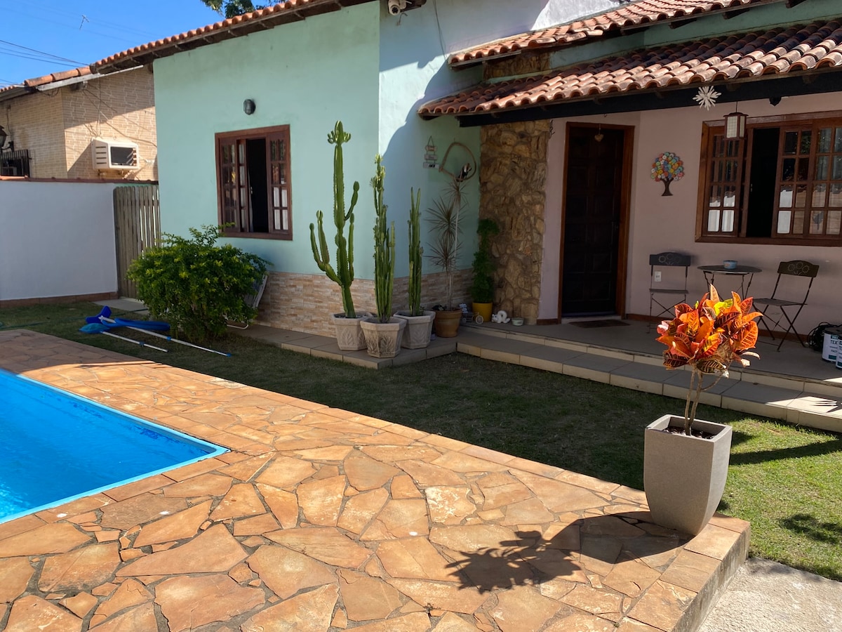 Enfim você encontrou o espaço com quadra de areia (beach tennis/volley), piscina e churrasqueira exclusivas para sua família! Estamos a 3 km da Barra de Maricá, em direção à Ponta Negra, a poucos passos da praia. Salão, 05 quartos (04 c/ar cond. e todos c/vent. teto) 03 banhs e cozinha completa. Não há nenhum outro lugar na região parecido com o nosso espaço, nada mesmo! Sua família vai adorar! Confirme nas avaliações dos hóspedes anteriores. Não alugamos para festas ou grandes eventos.