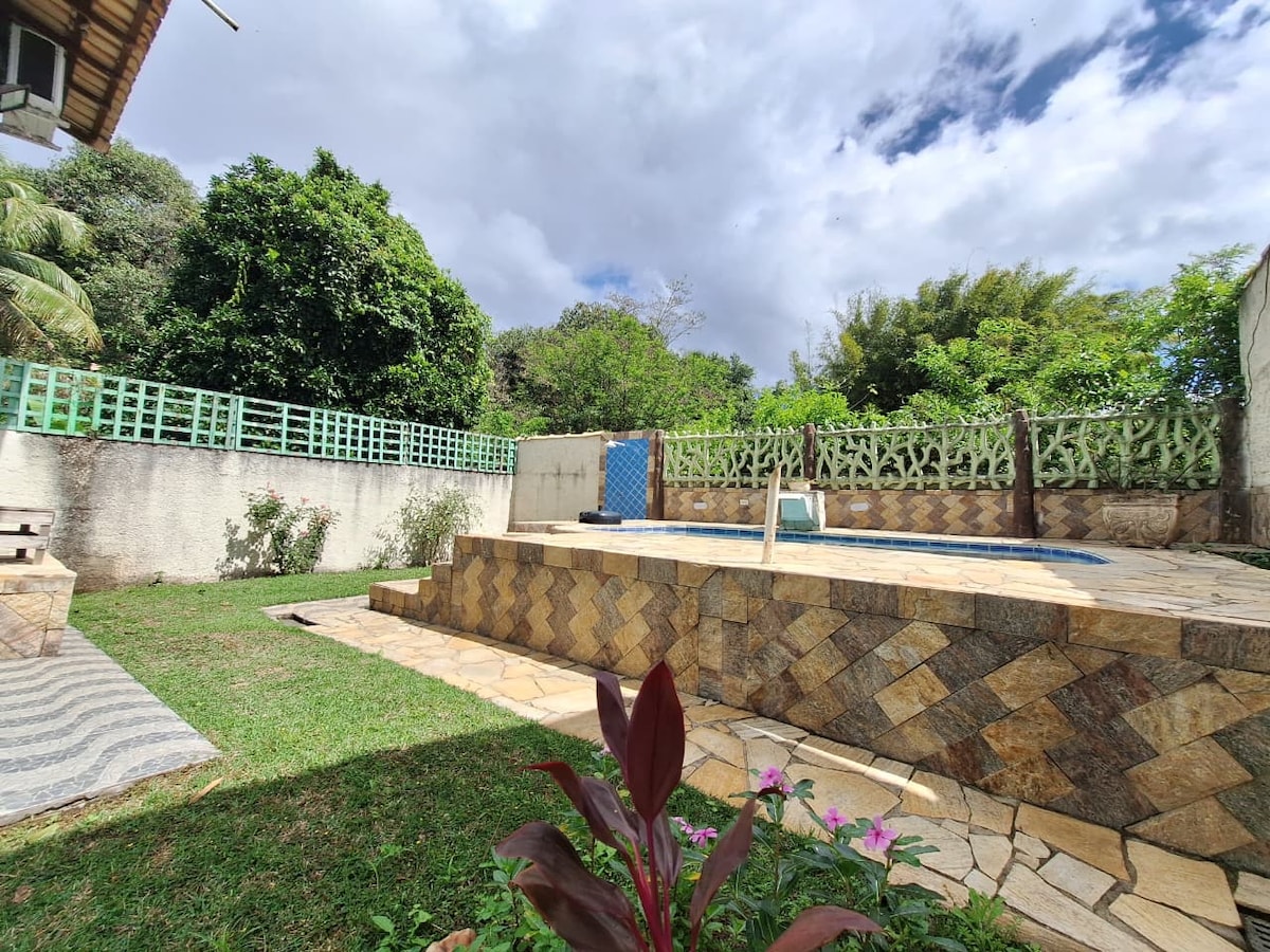 Casa com piscina, churrasqueira, sinuca, totó, ping-pong, Wi-fi e vista para Lagoa de Jacaroá, a 5 minutos do centro de Maricá (acesso asfaltado). Localizada em um platô,a casa possui 2 andares. O andar superior(principal) possui 4 quartos sendo 1 suíte e 1 dependência, 2 banheiros, sala ampla com varanda e cozinha equipada. O andar inferior possui um quarto, cozinha, banheiro e um grande salão de jogos com varanda.