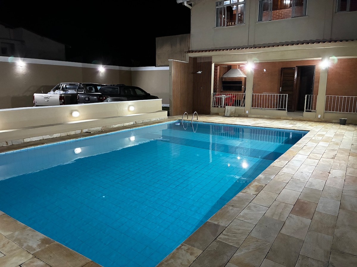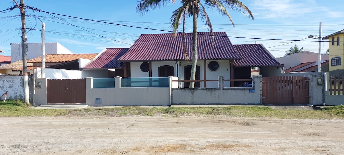 Casa espaçosa a 200m da praia e de frente para a lagoa, ideal para famílias e casais! Possui piscina 2,5x5m, 4 quartos (1 suíte, 2 quartos e 1 sala/quarto), 3 banheiros, sala ampla e cozinha americana equipada. Varanda com churrasqueira, pia, mesa e geladeira extra. Wi-Fi, garagem coberta para 3 carros, espreguiçadeira e guarda-sol. Ambiente tranquilo, perfeito para relaxar ou confraternizar. Pets são bem-vindos! Piscina, lagoa e mar para curtir ao máximo. Obs. Não fornecemos toalhas.