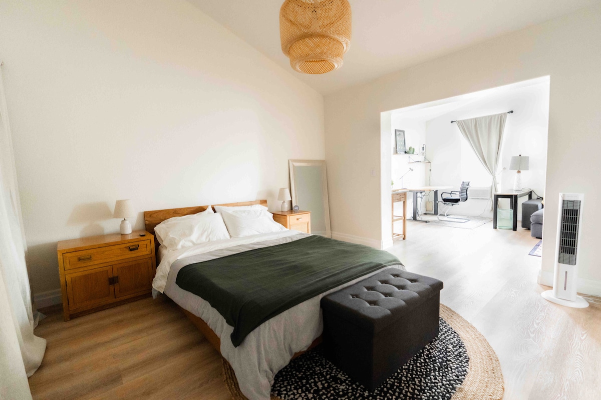 Welcome to your home away from home! Whether you’re here for work or an event, you will love your stay at Summit’s place. The suite is attached to the main house where I live with my dog, Summit. It includes a private entrance through the backyard gate, a bright & cozy living room, a large sit/standing desk for WFH, coffee maker, fridge & microwave, and a comfortable queen sized bed.
