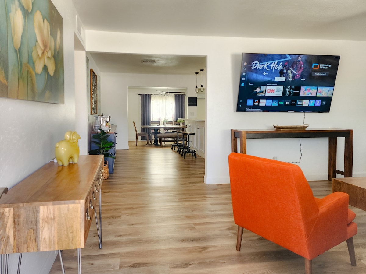 Welcome to your stylish one-bedroom oasis in the heart of Arizona! This chic retreat features modern decor, a King-sized bed, full size pull-out couch and fully equipped kitchen. Unwind in the comfortable living area or enjoy a cup of coffee on the large peninsula! Conveniently located near local attractions and beautiful hiking trails, this Airbnb is your perfect home base for exploring Arizona! Book now for a relaxing and memorable stay!