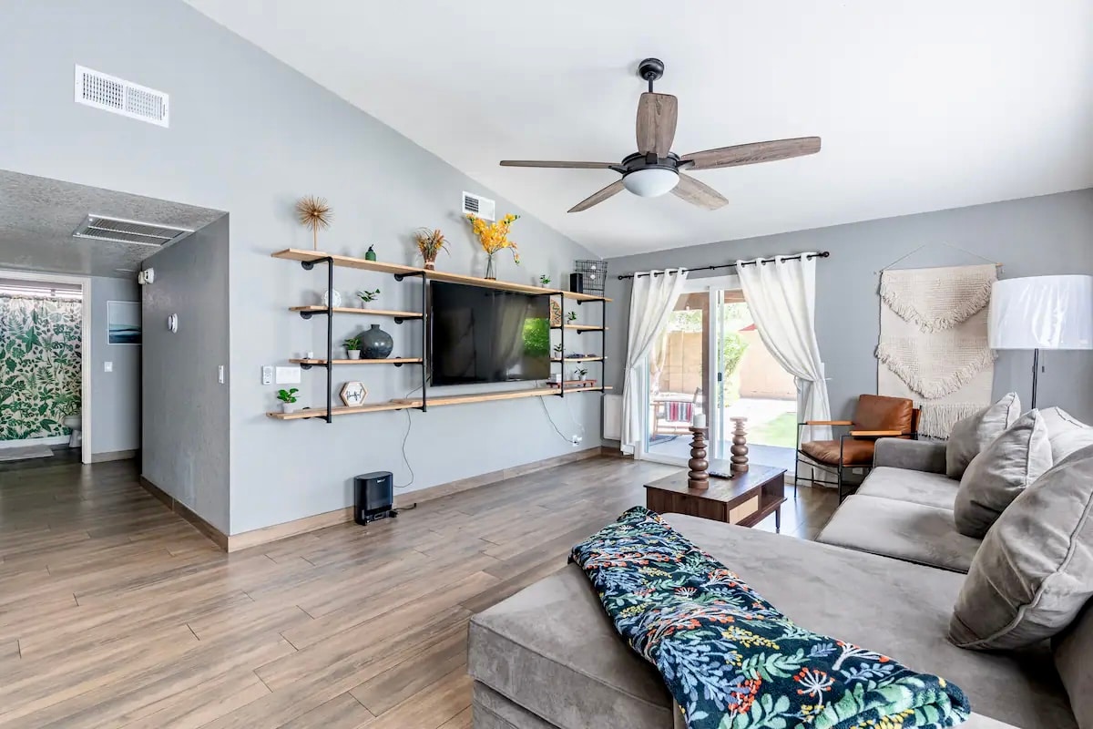 Welcome to Scottsdale Great Escape, your spacious and sunlit retreat. The open layout invites an abundance of natural light, creating a warm and inviting atmosphere. Whether you're here to work or unwind, we've got you covered with high-speed WiFi in the dedicated workspace, a fully equipped kitchen, a delightful backyard patio with an outdoor grill, and a cozy sofa where you can unwind and enjoy your favorite TV shows. For added convenience, there is an attached garage.