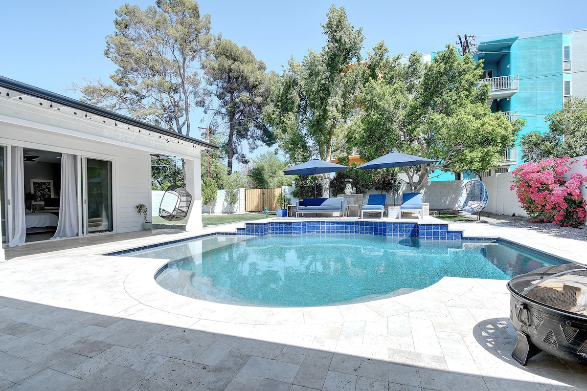 Experience Monarch House in a Phoenix Historic District—your spa-like retreat with unique artistic touches. The well-designed interior features a dining room and a fully equipped kitchen, perfect for memorable meals. Located in Uptown Phoenix, enjoy trendy restaurants, local boutiques, and vibrant nightlife just minutes away. Seamlessly switch between two private outdoor spaces and a shared courtyard, featuring an outdoor dining room and cozy fire pit.
