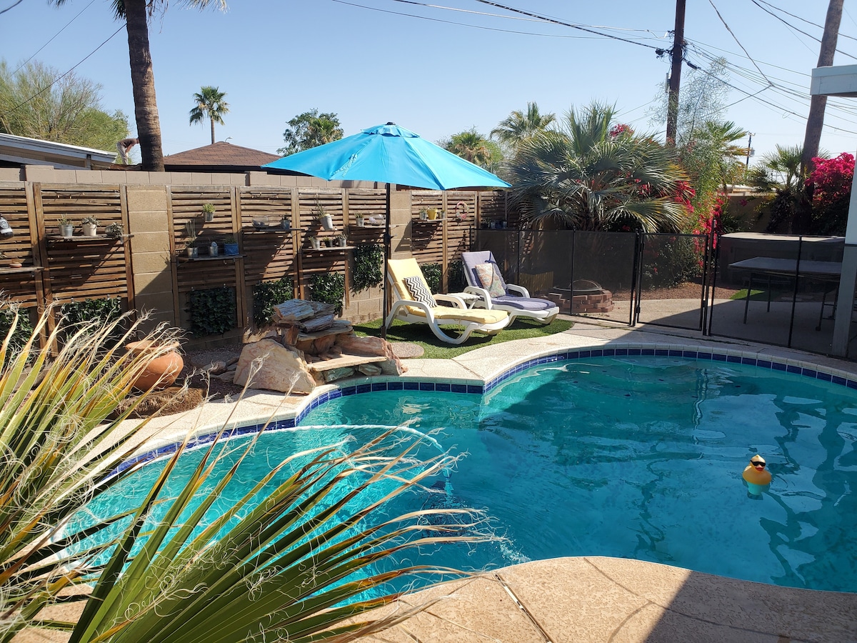 凉爽的蓝色绿洲!靠近亚利桑那州立大学和老城区!泳池/4卧/2卫