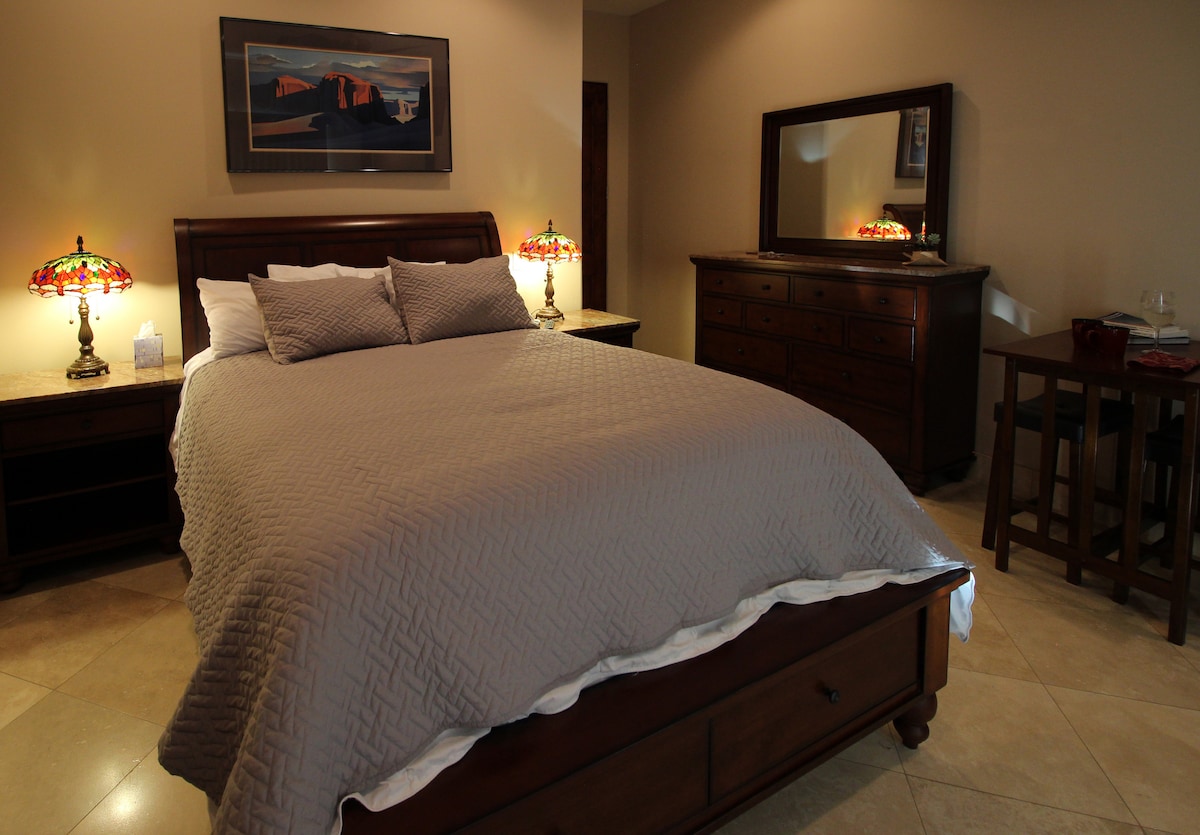 Nude art. Intimate room with private entrance. Palm lined st in Central Phx. Very safe. Close to restaurants, groceries, light rail and arts. Luxury king bed w/sexyprivate full bath, dresser, TV and mini split A/C and heat. Organic linens. Breakfast items. Nude/clothing opt. large, private, resort yard for sun bathing with lap pool, nude hot tub and couples outdoor rain shower. Soap up. Perfect for first/full time nudists. We have two rooms to rent + Clothing Optional Love shack. Massages avail