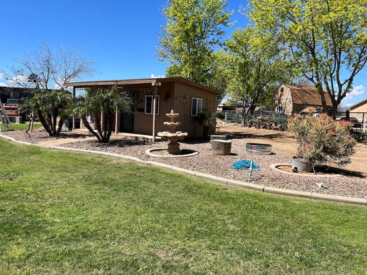 Private guest house on a nonsmoking, gate-secured property with galley kitchen, full bath, & walk in closet. Fully furnished & equipped, located at TnT Family Farm, previously a hobby farm. (No farm animals now) Well behaved dogs & declawed cats welcome - limited to two animals. See house rules before instant booking. Easy Interstate 60 & Loop 202 access. Close to Gateway Banner Hospital, AT Stil University, ASU Polytech, Mesa Gateway & Sky Harbor International Airports.