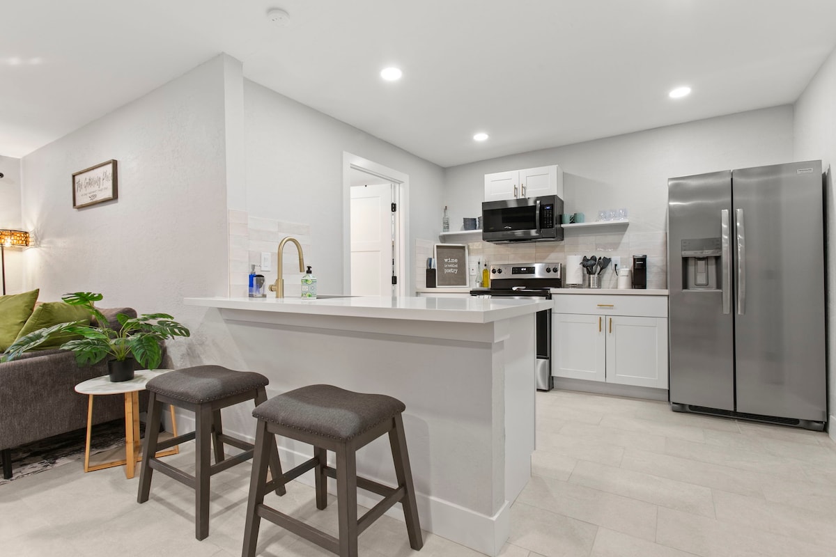 Reliably operated by a top AZ Superhost with 4,400+ 5 star stays. A TRUE find! Best location in Tempe - walkable to downtown, bars and restaurants on Mill, ASU (1.5 miles), Tempe Beach Park, etc. Hidden-away historic guest house with a private yard (and even a secret outdoor 2nd shower). Professionally designed and setup with guest comfort in mind - everything is here for you - premium bed, a dedicated workstation, fully stocked kitchen, an outdoor seating space with bistro lights. INCLUDED 👇