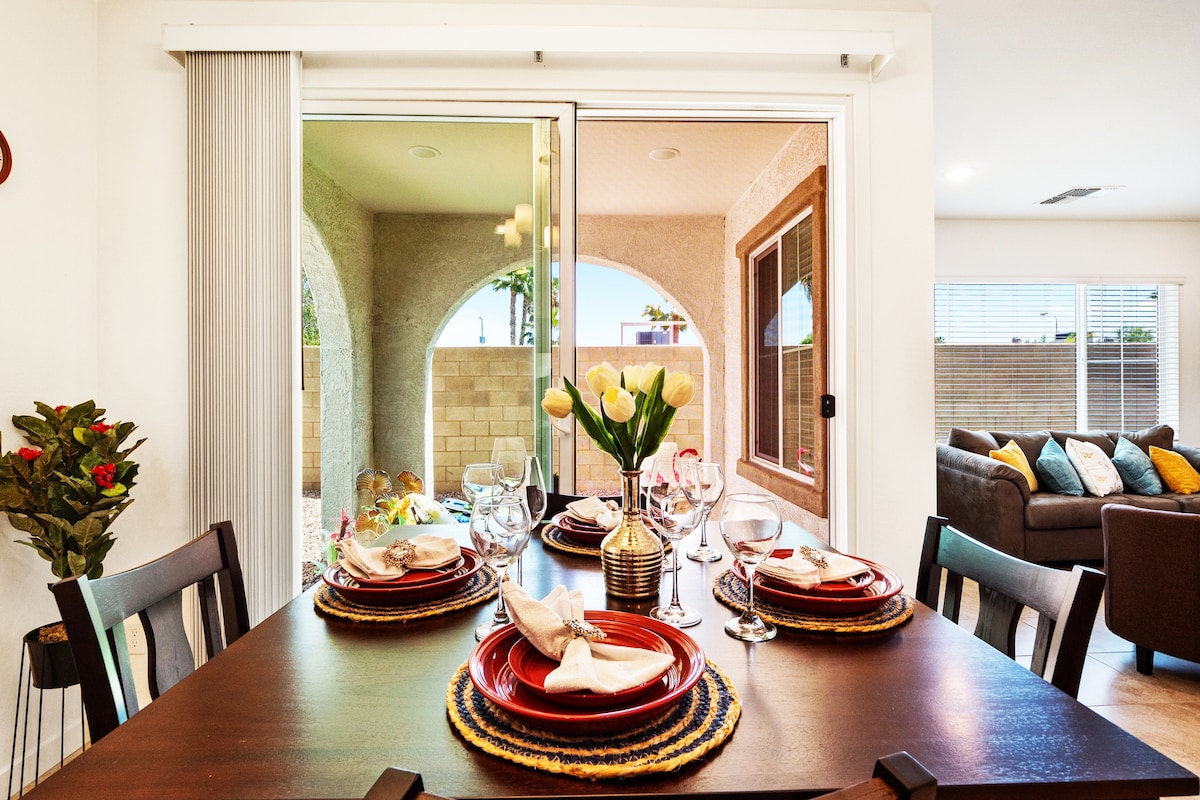 Amazing location!! Step into the comforts of the spacious and comfortable home with 4 bedrooms & 3 full bathrooms, situated in a quiet community. Close to restaurants, shops, entertainment and sports. ✔140" HD Screen Theater Movie Room ✔ Light breakfast included ✔ Private backyard with seating area, swing & café lights ✔ Air Hockey + Foosball ✔ Fully Equipped Kitchen ✔ Community swimming pool (summer only) ✔ Streaming apps ✔ Board games, books & toys ✔ Baby gear ✔ Soft water ↓↓See more below!↓↓