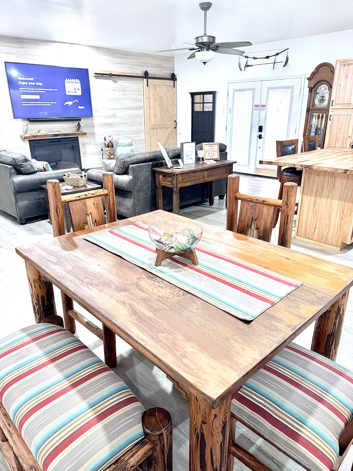 Welcome to Desert Diamond Escape! Your own slice of paradise in San Tan Valley, AZ! Our impeccably furnished 1500 square foot retreat, boasting three cozy bedrooms and two luxurious bathrooms. Dive into relaxation in our 12,000 gallon salt water pool complete with a soothing waterfall. Unwind in our outdoor oasis featuring a charming gazebo, BBQ, lounge sets, putting green. Fully stocked kitchen, 4 TVs, fiber internet. Don't miss this exceptional experience! - Pool heat is an additional fee.