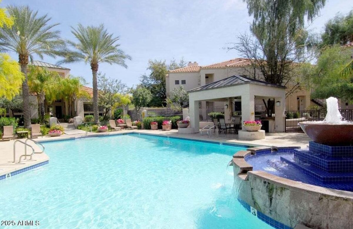 Welcome to your first-floor, stylish condo in North Scottsdale’s desirable neighborhood! This curated space blends Southwest charm with modern updates. You’re just minutes from golf courses, best hiking trails, and quick freeway access. Next to a heated pool, Jacuzzi, and gym. Covered parking is right outside your door. Walk to grocery stores, shops, restaurants, parks, and pickleball courts. Plus, easy access to Mayo Clinic and WestWorld nearby! Attentive hosts are always ready to help.