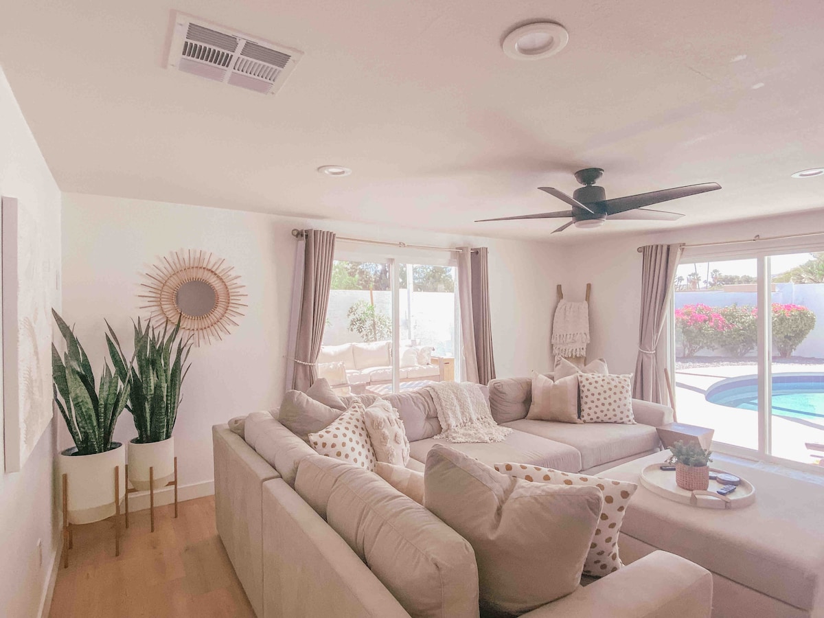 🏡Enjoy the coziest stay in Phoenix. Our peaceful home and relaxing garden are a true oasis in the desert for your family.🌵 ☀️Bright and airy, this home in Ahwatukee foothills features an ensuite bathroom, spacious living area, and fully-equipped kitchen. 💆♀️2 beautiful patios with seating to help you unwind. The whole house invites the garden in. 👩🍼Ideal for families with children and elderly, for couples, or traveling professionals. Don't forget to follow us @blueromarin for more.