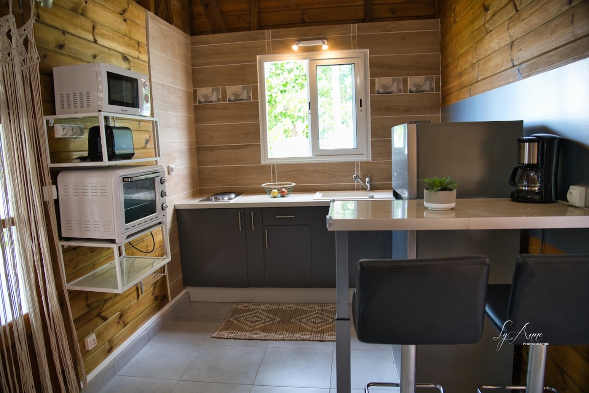 Détendez-vous dans ce logement éco-responsable pensé pour se déconnecter et se ressourcer. Décor chaleureux et cosy, espaces lumineux et intimité assurée. Profitez d’une expérience unique avec la douche extérieure et d’un jacuzzi sous les étoiles, le tout dans un jardin tropical pensé par Mylène. Pour un séjour inoubliable, Kazaperrok vous offre la possibilité de venir admirer nos amis perroquets Chacha, Ohara, Coco, Juliette, Paco et Fidji !!!