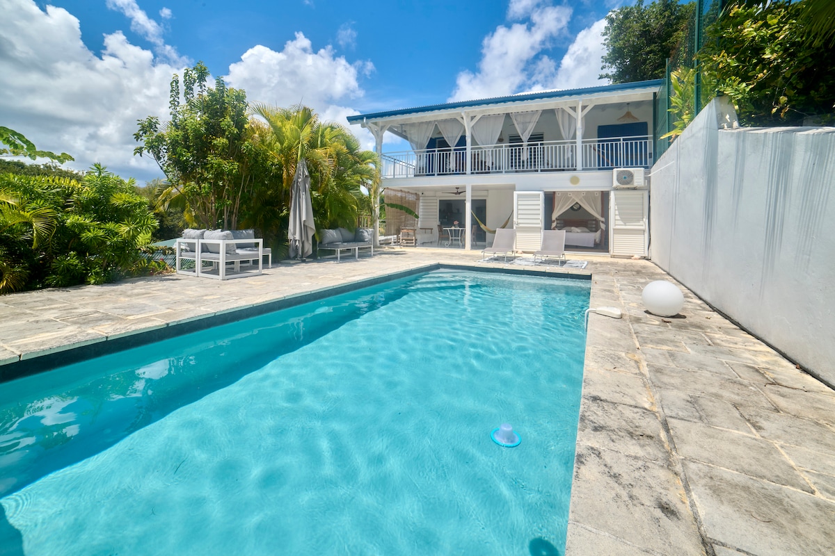 Mini-villa tout confort à Grand-Bourg, Tout confort avec des chambres climatisées, piscine privée type bac à punch, cuisine équipée, eau chaude, wifi , possibilité de location de voiture. Calme, lumineux, idéal en couple, famille ou amis. L’ouverture des chambres dépend du nombre de voyageurs indiqué lors de la réservation. Merci de bien renseigner le nombre exact de personnes afin que le logement soit préparé en conséquence. A 10min à pied du port et du centre-ville , 700m de la plage, etc..