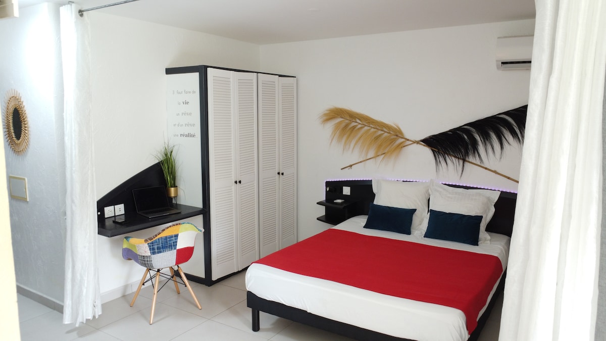 🌴 Bienvenue à La Marigalantine Évadez-vous dans un havre de paix et de détente au cœur du prestigieux village Kawann. La Marigalantine est votre refuge, où confort et modernité s'allient au charme authentique de Marie-Galante pour vous offrir un séjour inoubliable. Que vous soyez en famille ou entre amis, ce logement vous offre un cadre idéal pour créer des souvenirs mémorables, dans un espace entièrement rénové, équipé et conçu pour votre confort.