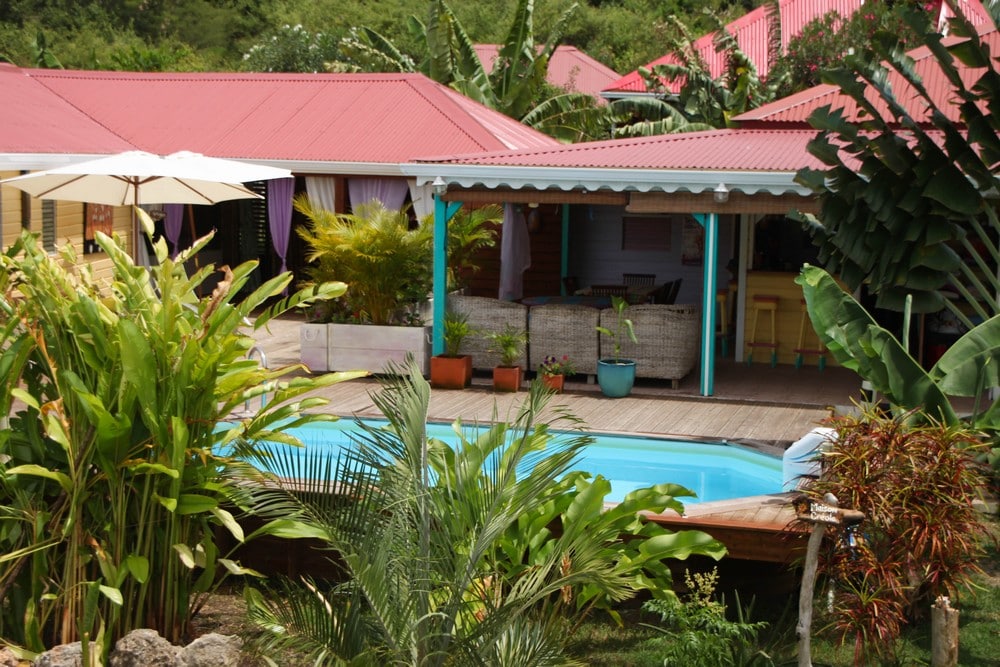 La Cabane dans l'arbre du jardin est un logement atypique de type studio pour 2 personnes. Elle fait partie de : Les gîtes tit'anse et Spa Elle est composée : •Lit suspendu de 160. •Une piscine commune aux gîtes •Coin cuisine •Douche (eau chaude) •1 Wc Une machine à laver est disponible,local commun Sabéha et Frédo vous réservent un accueil chaleureux dans leurs gîtes à flanc du morne, à 5 minutes à pied de la plage de petite anse avec un accès à la piscine commune aux locations de vacances.