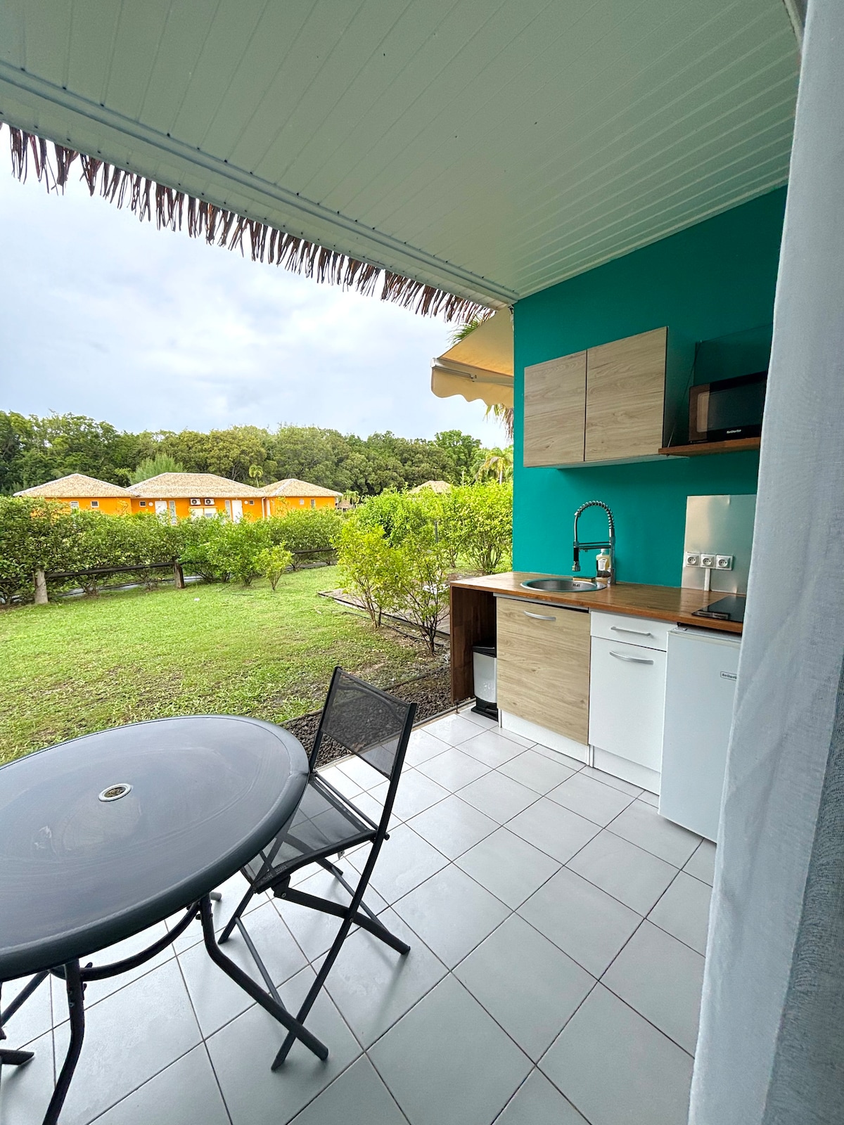 Bienvenue à l'Oasis où vous allez adorer poser vos valises le temps d'un instant ressourçant à Marie-Galante. Dans la pièce principale, un canapé convertible, un lit king size avec une literie confortable. La terrasse est composée d'un coin cuisine et d'un espace détente vous permettant de prendre vos repas vue sur le jardin, accompagné du chant des oiseaux. Vous n'avez qu'à traverser le petit bosquet préservé du littoral, pour vous retrouver sur la plage de Folle Anse aux eaux cristallines.