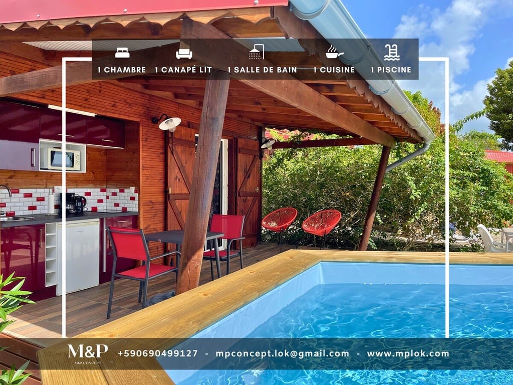 Bungalows en bois, orientés vers les magnifiques couchers de soleil sur la Guadeloupe et les Saintes idéal pour passer un séjour. Au pied de cette habitation une piscine pour vous rafraîchir et vous détendre. Un espace aménagé autour de la piscine avec chaises longues, barbecue et petit carbet.
