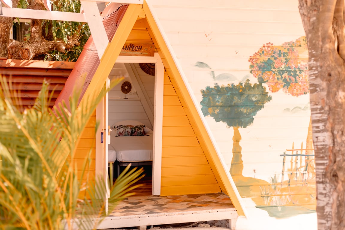 TI'KAZ Cannelle est un bungalow de style créole tout en bois et aux couleurs tropicales pouvant accueillir un couple avec un enfant. A l'extérieur une spacieuse terrasse en bois réunie un espace repas, un confortable salon et son hamac donnant sur la piscine privée et le jardin aux essences uniques : bananiers, papayers, hibiscus... Détente et dépaysement garantis !