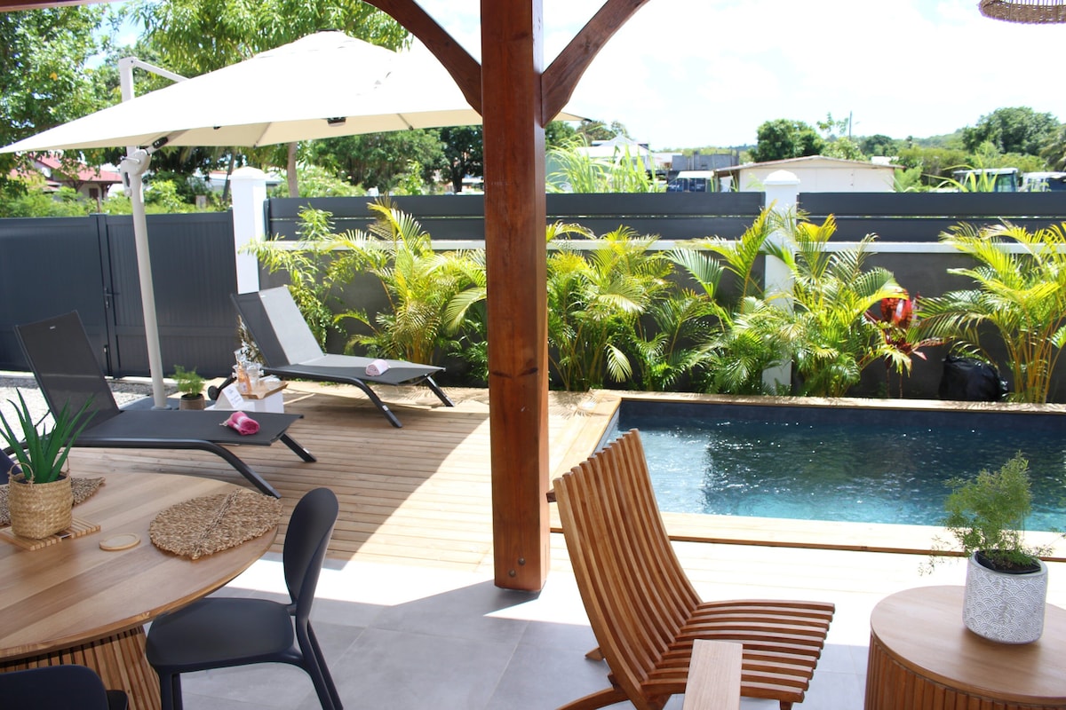Incroyable pool house et sa piscine privative. Au cœur d'un jardin tropical jouissant d'un calme absolu d'une excellente ventilation naturelle et d'une magnifique vue mer Dominique et forêt ! Non adapté aux enfants en bas âges.