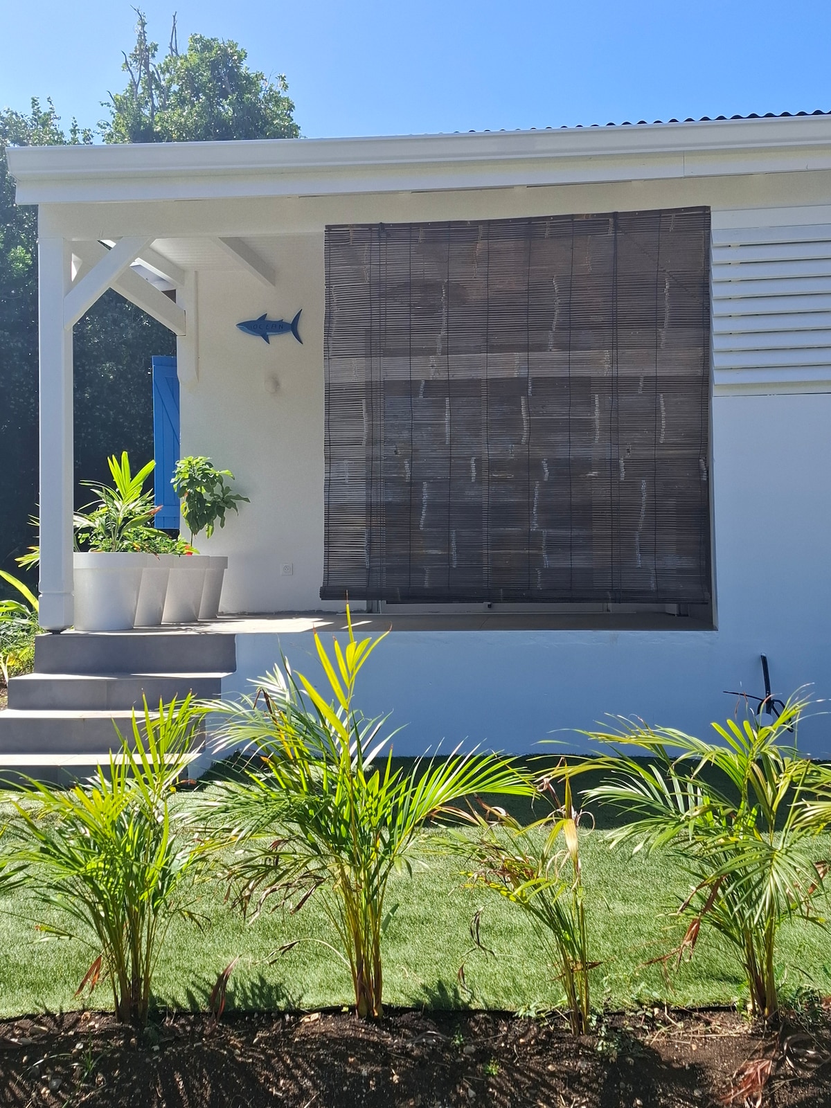 L'EFFET LAGON c'est l'effet waouh. Dès que vous arriverez vous serez subjugués par la magnifique vue et l'accès direct à la petite plage. Vous pourrez passer vos journées sous la grande terrasse très bien ventilée : salon, espace repas, bar pour des apéros festifs. Hamacs, transats, paddle, kayak, long board, palmes tubas masques, bbq, douche extérieure. Séjour-cuisine ouvert sur la terrasse. 4 chambres climatisées, fenêtres à clayettes pour le charme créole, 2 salles d'eau (1 avec wc), 1WC.
