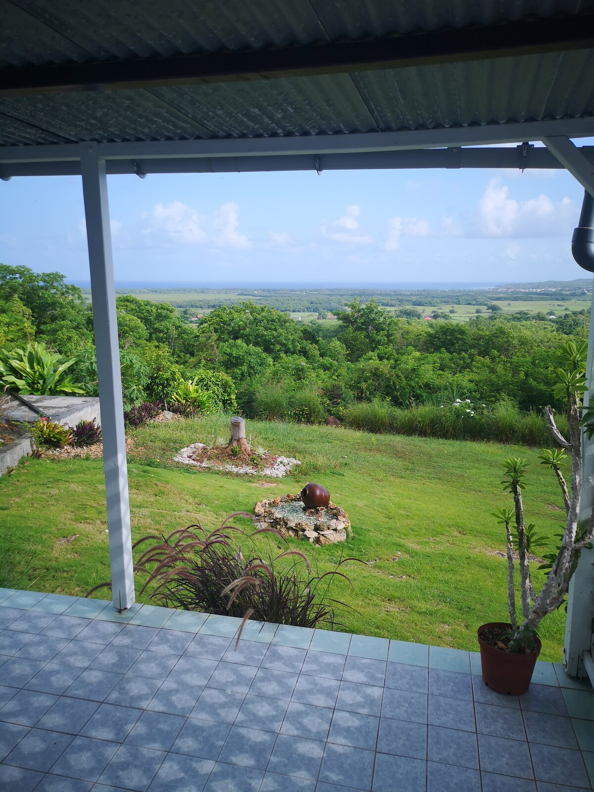Petite maison d'une capacité d'accueil de 6 personnes située à 5 km du bourg sur l'île de Marie Galante avec belle vue panoramique sur la baie de Saint Louis et les îles avoisinantes. Comprenant 2 chambres climatisées avec lit double, connexion wifi, une salle de bain, une pièce à vivre avec canapé lit, une cuisine équipée avec bar américain, une terrasse et un jardin dans un lieu tranquille.