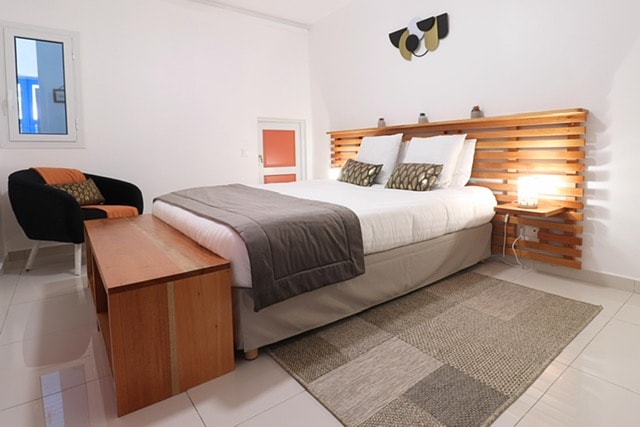 DORMIR MARIE-GALANTE vous ouvre les portes de sa Suite Tourterelle, un écrin de confort et de douceur niché au cœur de Grand-Bourg à proximité immédiate du marché, des commerces et du port. Située au 1er étage, cette suite spacieuse de 65,4 m² vous accueille dans : • Un salon cosy avec espace de travail ; • Une cuisine moderne équipée ; • Une salle d’eau aérée ; • Une chambre climatisée ; • Un balcon côté rue et une terrasse arrière. La Suite Tourterelle peut accueillir jusqu’à 3 personnes.