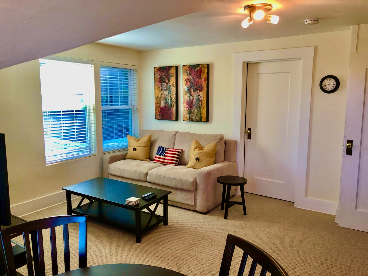 PLEASE CHECK CALENDAR TO SEE IF YOUR DATE IS AVAILABLE. Thanks! NEWLY RENOVATED!!! Furnished comfortable 1 bedroom apartment two blocks from beautiful downtown Mill Valley, just north of San Francisco. The quaint town offers gourmet restaurants, the Mill Valley Outdoor Art Club, cafes, shopping, trail heads and a movie theater. The apartment is located in a walkable flat area, but also steps away from great hiking and biking. There is plentiful free and safe parking on the street.