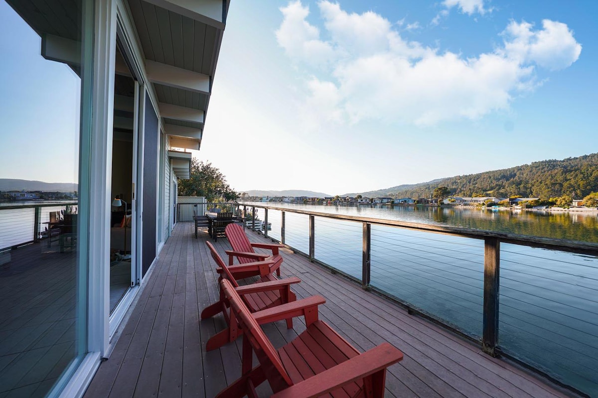 Two romantic floating condos with breathtaking water views. Relax & enjoy a tranquil escape in style and comfort. Catch the sunrise from either of your 2 super comfie beds or lounge on the deck with occasional pelicans (or even a seaplane) coming and going. Unique and perfect for a getaway, workacation, or retreat. Golden Gate Bridge is 6 min away. Airport bus stops a block away. Walk/bike path to Sausalito & Mill Valley. Ferry/bus to SF. Free parking Read our reviews!