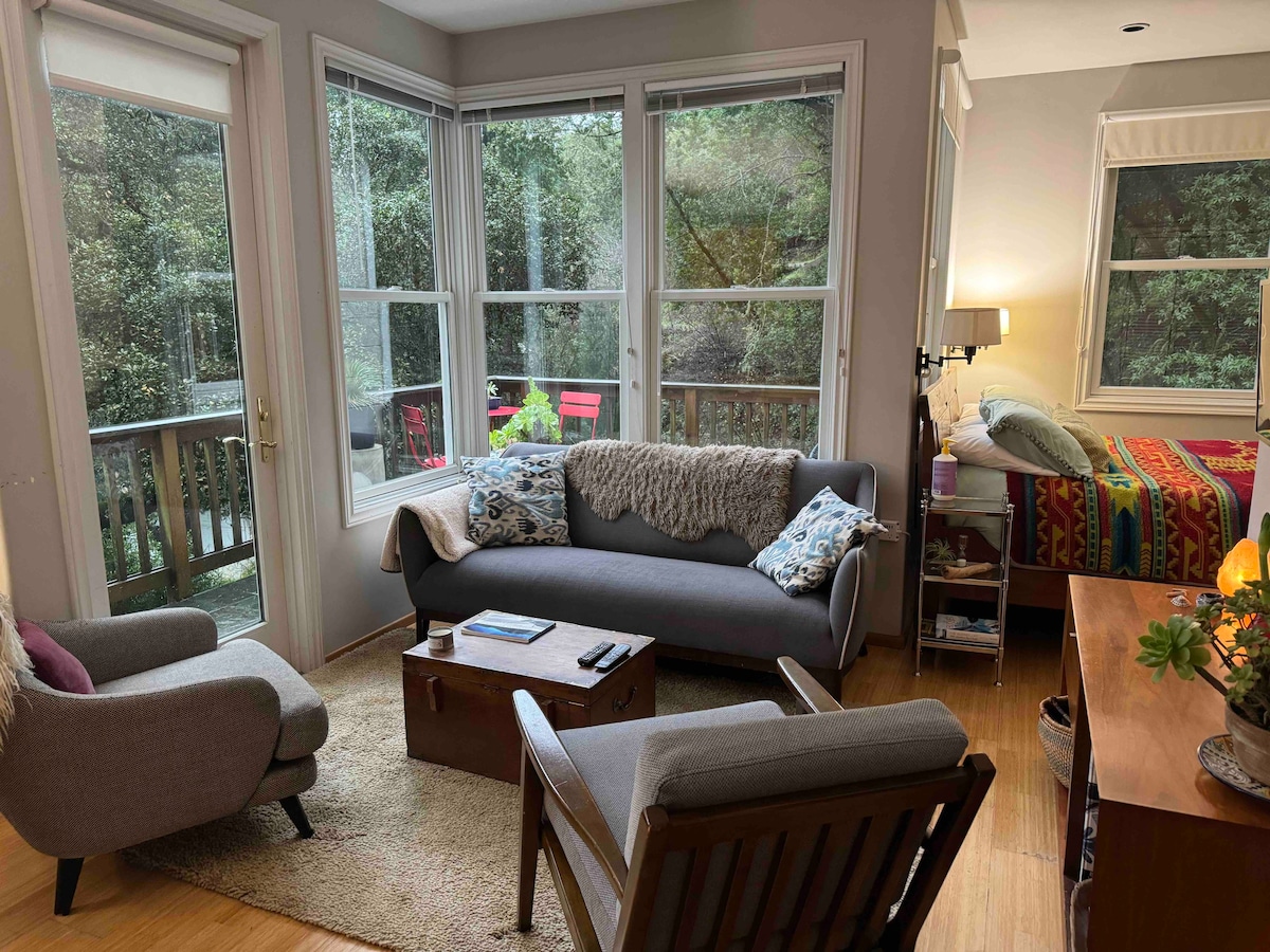 Find peace and solitude just across the Golden Gate Bridge. Nestled at the base of Mt. Tamalpais and just minutes from Downtown San Anselmo and Fairfax, this charming studio is the perfect place to unwind for travelers, artists, and outdoor enthusiasts alike. Ideal for working remotely or exploring all the hiking and biking adventures that Marin has to offer, this is the perfect destination to get away and unplug. Please contact me if your dates are unavailable in our calendar!