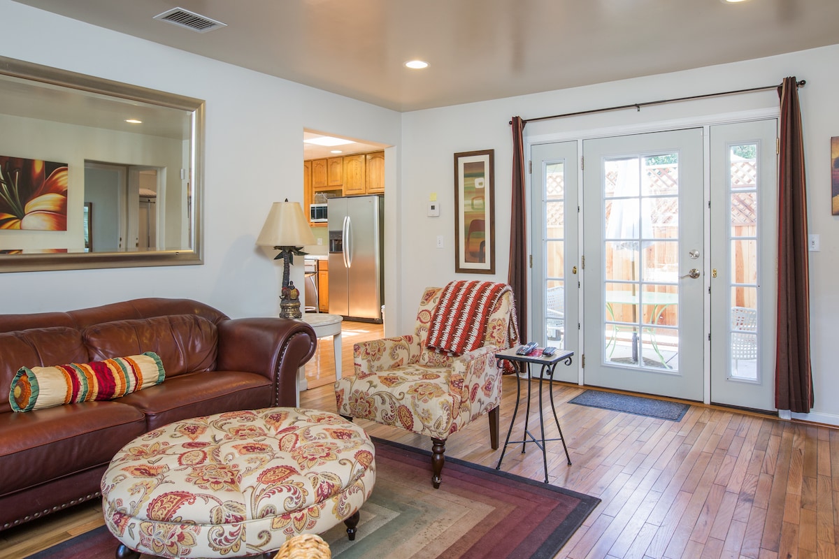 You will enjoy easy access to everything from this centrally located place. The right pets welcome, but unfortunately we can’t have dogs swimming because it affects the pool negatively— so sorry! We have a 3-year old + Aussie named Luna and she’s good with other dogs, but can be territorial at first. Please cover couch and bed & cleanup after pets —I don’t charge a pet fee so please be mindful of keeping the bungalow clean. Much appreciated.