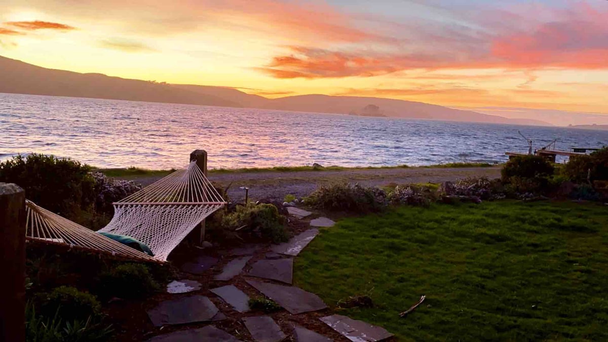 *Waterfront Cottage: 2 bdrm/1 bath retreat on Tomales Bay. *Unbeatable Views: Wrap-around deck with breathtaking sunset views. *Hot Tub Heaven: Relax in a deep hot tub or step down the private ladder for an invigorating saltwater plunge. *Private Dock: BBQ, outdoor seating, and direct bay access. *Cozy Comfort: Wood-burning stove, deluxe amenities, and dedicated workspaces with high-speed WiFi. *Fully Stocked Kitchen: Includes organic coffee, tea, oils, and condiments. *No cleaning chores!