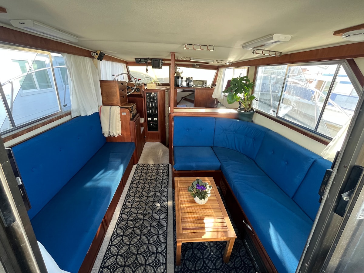 Nestled on the water of the Sausalito Richardson Bay, our houseboat offers an immersive experience of unrivaled beauty. The breathtaking, panoramic views unfold like a canvas right before you. Upper level of remodeled houseboat with rooftop deck, full kitchen and laundry where every detail is thoughtfully designed including local artists' work. Staying here is not just about accommodation; it’s creating memories that will linger long after you’ve departed. Not suitable for young children/pets.