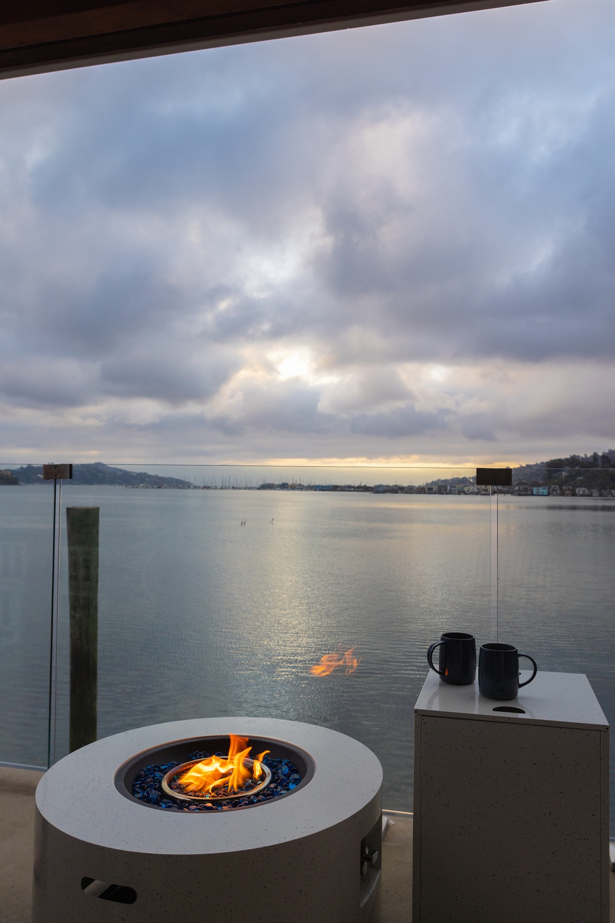 Romantic floating condo with breathtaking water views. Relax & enjoy a tranquil escape in style and comfort. Catch the sunrise from your super comfie KING bed or lounge on the deck with occasional pelicans (or even a seaplane) coming and going. Unique and perfect for a getaway, workacation, or retreat. Golden Gate Bridge is 6 min away. Airport bus stops a block away. Walk/bike path to Sausalito & Mill Valley. Ferry/bus to SF. Free parking Read reviews of this or our 3 other floating condos!