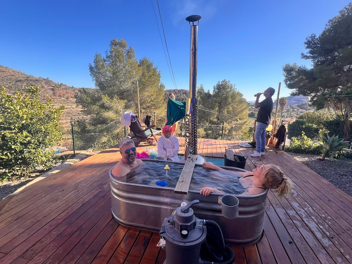 2 villas / 1 plot / Chef Angela and Christian Ras plus the 4 dogs reside onsite inside their own private villa. You will reside in a separate attached private neighbouring villa. Complete separate living spaces with a large range of shared amenities. Access to EVERYTHING. Absorb Spanish culture. Local resident guides. SHARED AMENITIES ❄️Ice Bath 🗿Tiki Bar & XXL Pool 🌊SUP BOARDS 🥊Boxing Bags 🔥Wood Fired Jacuzzi, 🧘♀️Yoga Decks 🧑🏼🍳Private Chef Service 🤿 Dive 🎧Arts & Music