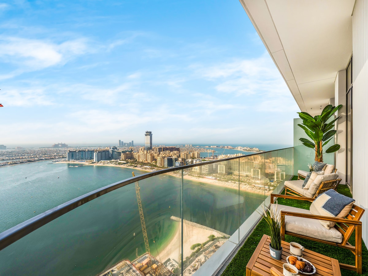 From sunrise over the Marina to sunsets melting into the sea, this corner 3 BR suite puts you inside the view, not just in front of it. Floor-to-ceiling glass wraps the living space, framing Bluewaters, Ain Dubai, and the endless horizon like moving artwork. While the Marina buzzes below, your arrival is effortless — the tower’s private bridge access means you’re above the traffic, gliding straight into your retreat. This isn’t just another stay in Dubai Marina. It’s the one you’ll remember.