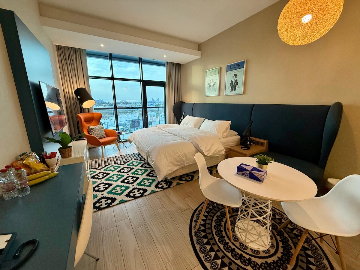 Experience all the splendor of Dubai, and rest comfortably inside our upgraded luxury studio with Netflix, located next to Nakheel Mall at the Palm. Take in the breathtaking views from your private balcony, and enjoy access to the best landmarks, dining, free beach access, and experiences the city has to offer. Unwind at the luxury fitness area or take a refreshing dip in the 25-meter swimming pool. If you value freshness, take advantage of our free cleaning service, available twice a week.