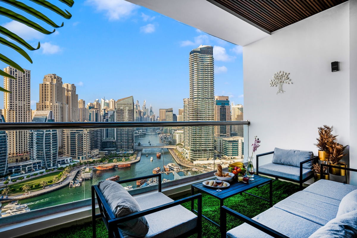 Elite 3BR Haven with Panoramic Marina & Sea Views