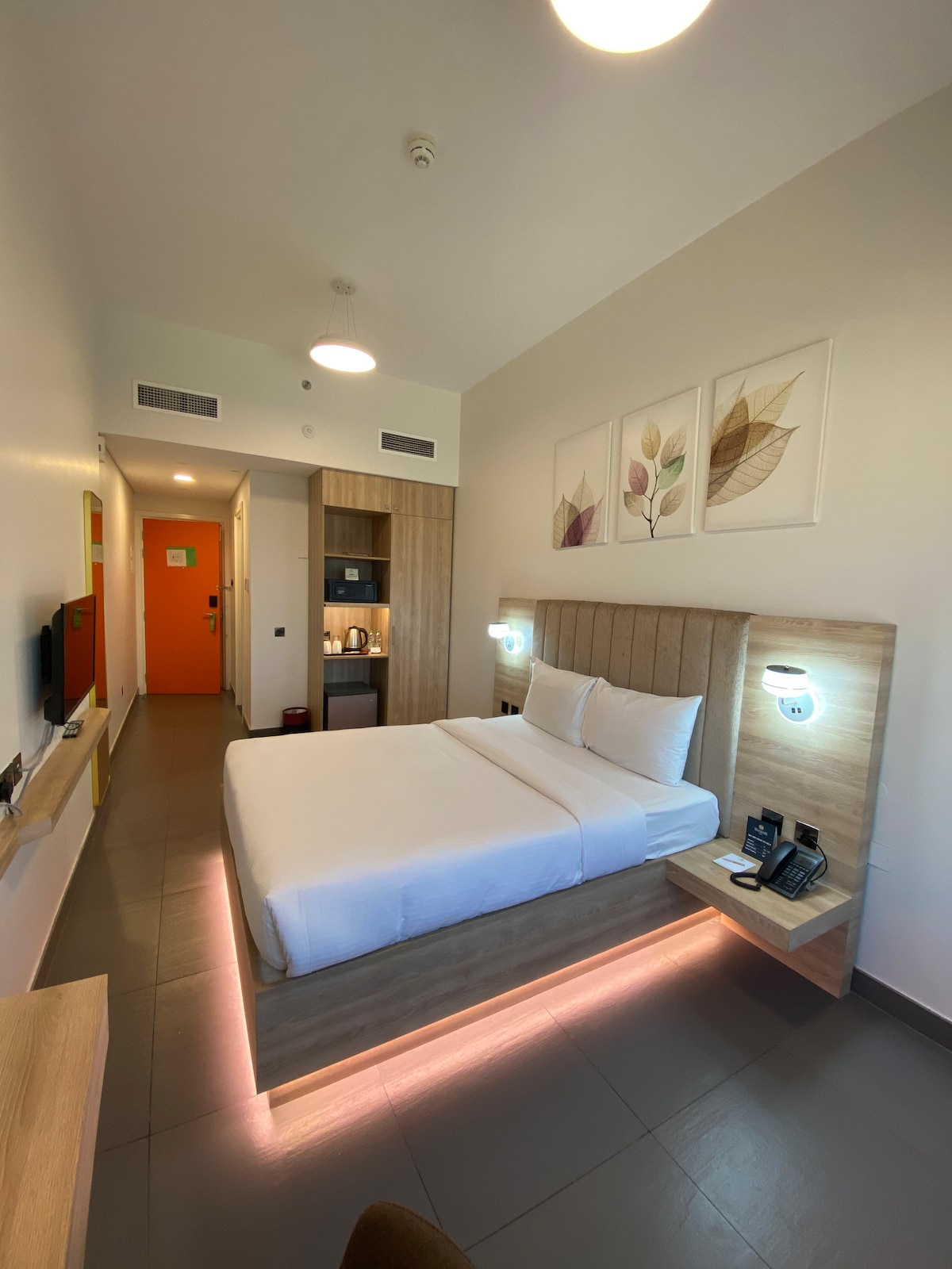 All taxes and fees inclusive. Security Deposit may be asked upon check in (refundable). Room Only basis 35 sqm apartment fits 2 adults Private bathroom, dinning area, kitchenette, balcony Hotel is 1 KM walk to Dubai Internet City Metro Station. And 10 minutes drive from Mall Of Emirates, and Jumeirah Beach. Wi-Fi, Pool, GYM, cleaning. for more info, please check the listing space below....