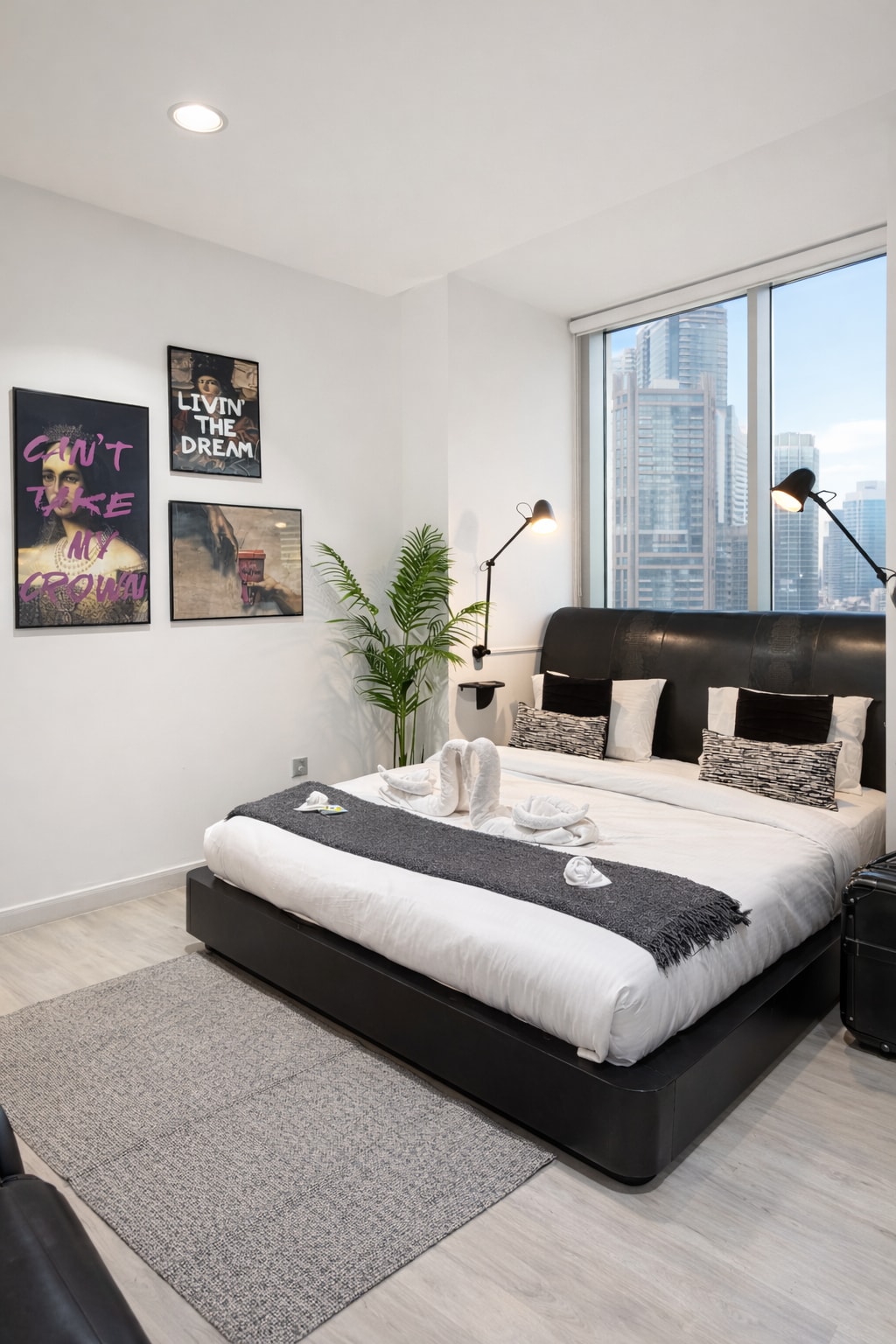 🆕 Newly renovated & furnished (Sept ’25) 🤖 Alexa-powered Smart Home ✨ 800ft² / 74m² on 28th floor 🌆 Skyline & 🏝️ Lake views 💻 Dedicated workspace 🛜 400 Mbps WiFi 🛁 Modern bathroom 🍽️ Premium kitchen 🅿️ Free parking 🚆 1-min walk to Metro 🏋️ Gym access • 👮♂️ 24/7 Security 🧹 Free weekly housekeeping for long stay (15 days+) Perfect for travelers seeking luxury, comfort & smart-home convenience near JBR Beach & Dubai Marina Message us if you have any questions!
