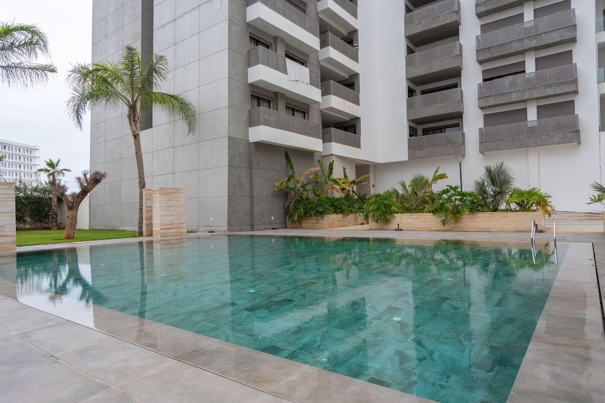 An oasis in the heart of Ain Diab.We are offering an authentic,beautiful and peaceful experience just next to the beach at our brand new appartement with breathtaking panoramic view.The property offers a bright and comfortable environment with all the necessary amenities for a pleasant stay.And if you are in a party mood, there are dozens of beach bars,lounges and clubs to choose from just 10 min walking away. Morocco Mall 7mim Free privite parking,swimming pool,24 hour security.