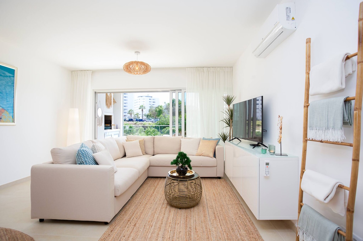 Located on top of the cliffs that frame and protect one of Europe's most iconic beaches, Dona Ana Beach, the apartment features a unique full front ocean, beach and pool view, that can be enjoyed from the patio, and the living room. It has been the venue for many happy family gatherings over the last 20 years, and in 2023 it was remodeled to a very high standard using top tier materials, appliances and furniture in order to provide superior comfort all year round. We look forward to host you.