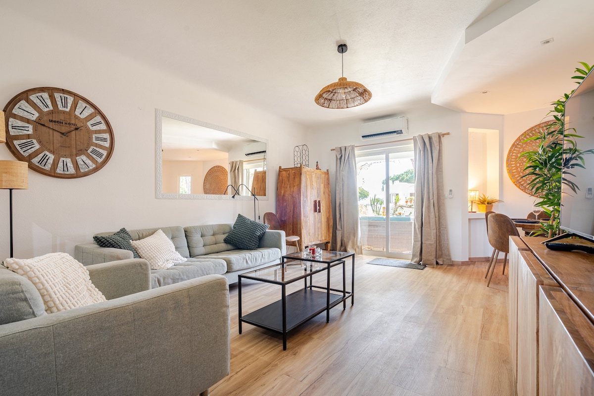 Welcome to Casa Mike, a haven of refinement and comfort in the heart of the Algarve! This stunning designer apartment offers: ✨ 2 spacious bedrooms, ✨ 2 modern bathrooms, ✨ A large terrace with BBQ, ✨ A fully equipped kitchen ✨ An elegant living room for relaxation ✨ Access to the swimming pool, gym, and private parking Located near beautiful beaches, delightful restaurants, lively shops, and charming local bakeries, Casa Mike is the perfect choice for an unforgettable getaway!